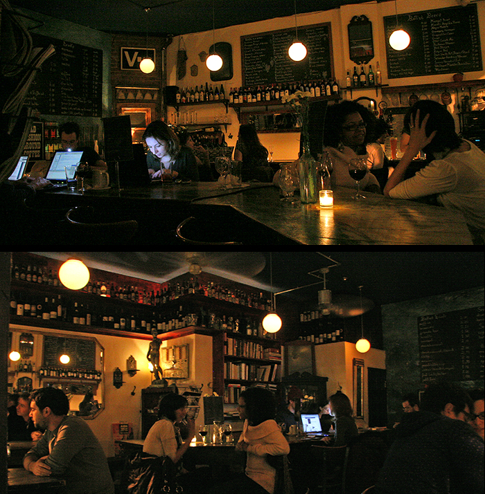 VBar & Cafe, opened in 2000, typifies the new era and is one of the nicest neighborhood bars I have been in. Located at 225 Sullivan Street in the Village, it’s atmospheric, dark, woodsy, and has a nice library, music, free WI-FI, light food, and nice people (however, it can get crowded and noisy at busy times). It is also pleasant by day – nice for a light lunch, some work, socializing, or a place to take a break. Virtually every customer review I have read extols its virtues, with “hidden gem” as the constant refrain. So if you want a great bar/cafe, or perhaps if you just gotta get out, try this hidden gem…