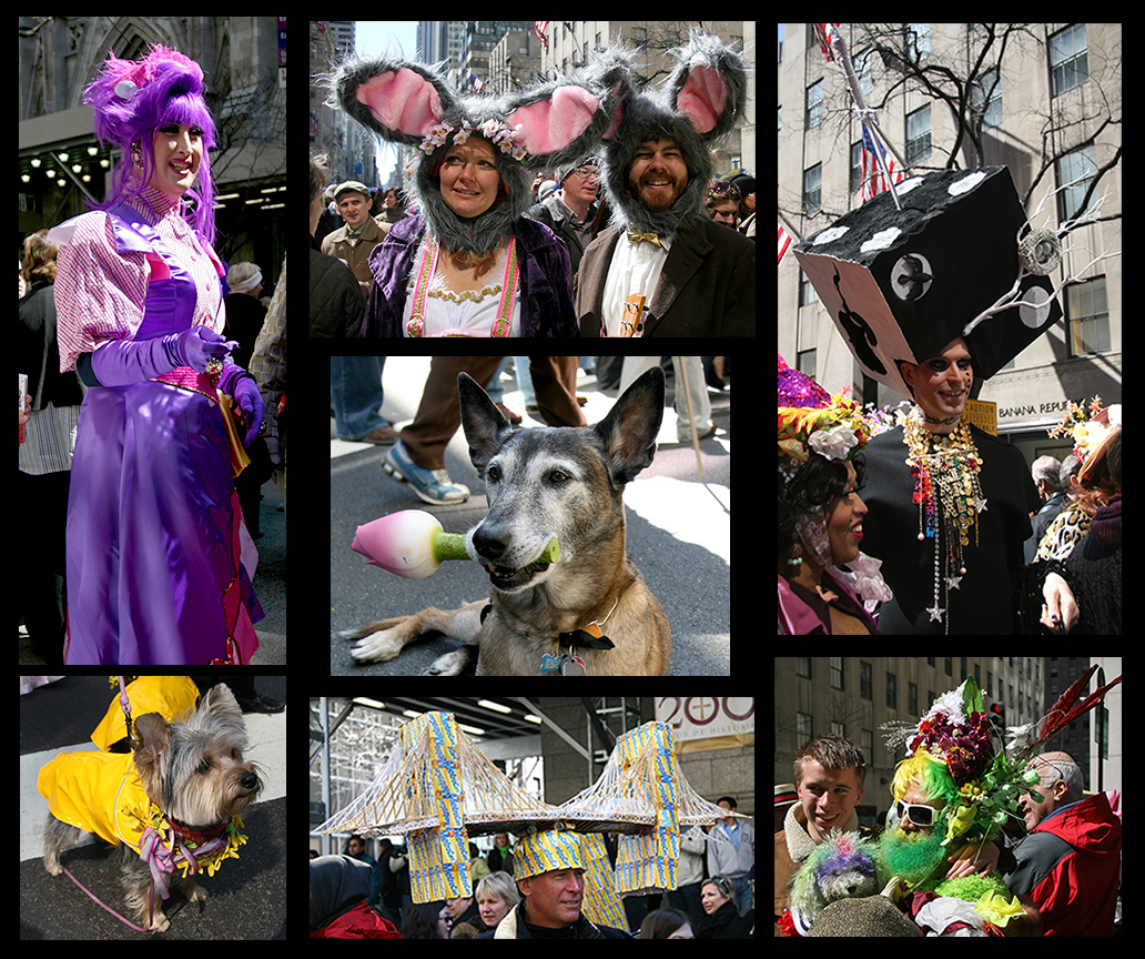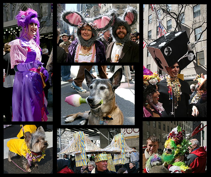 This is my third year at the NYC Easter Parade, and I have featured the more unusual participants in the main photo. For a series of photos from the parade of the beautiful and floral, please go here.