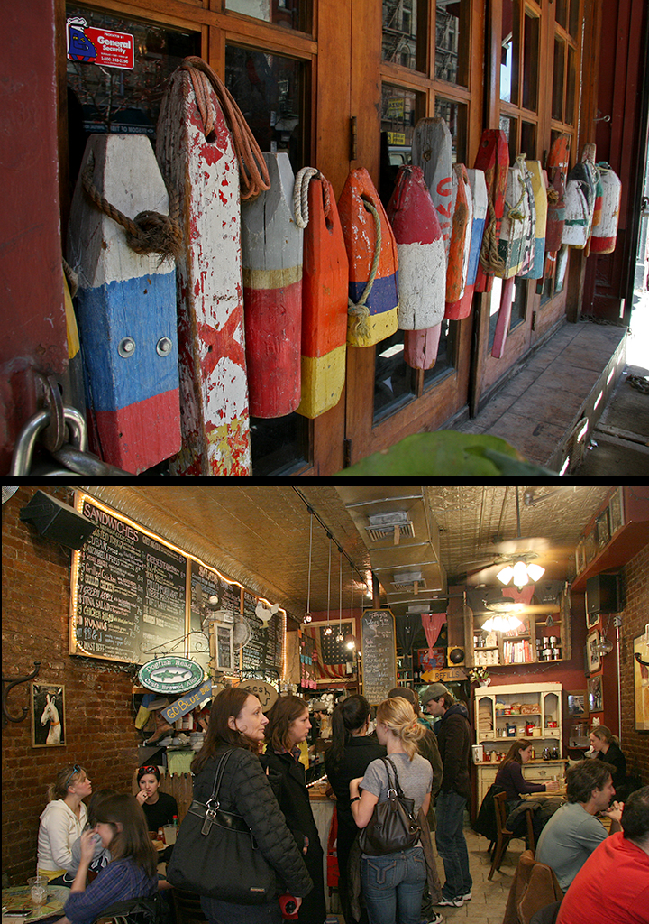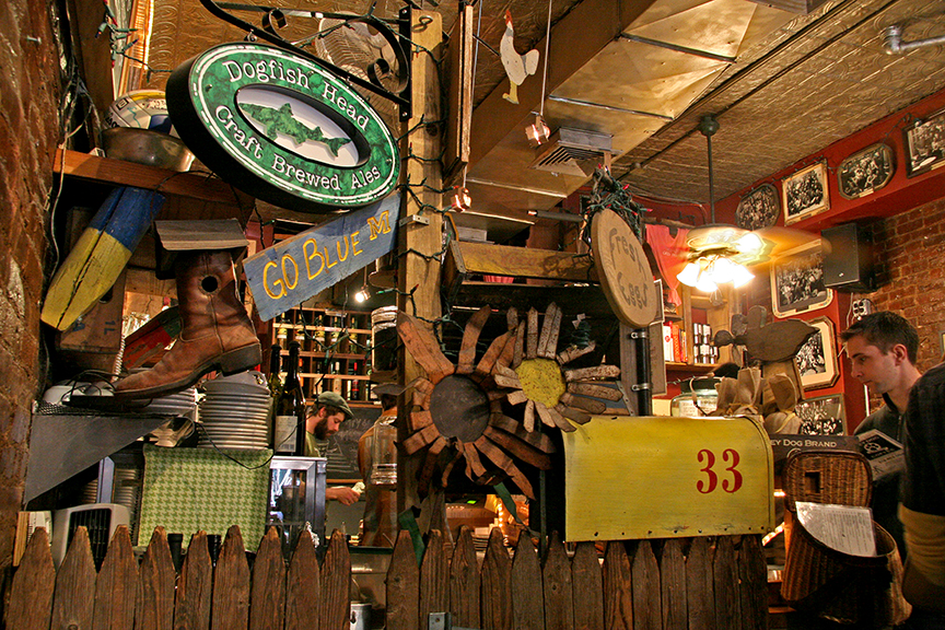 NOTE: The Grey Dog was created in 1996. It was named after Moose and Goose, the owners’ two labrador retrievers – one white, the other black. The location in the photo is the original at 33 Carmine Street in the Village (Update 1/17/12: Now closed). A second location recently opened at 90 University Place.