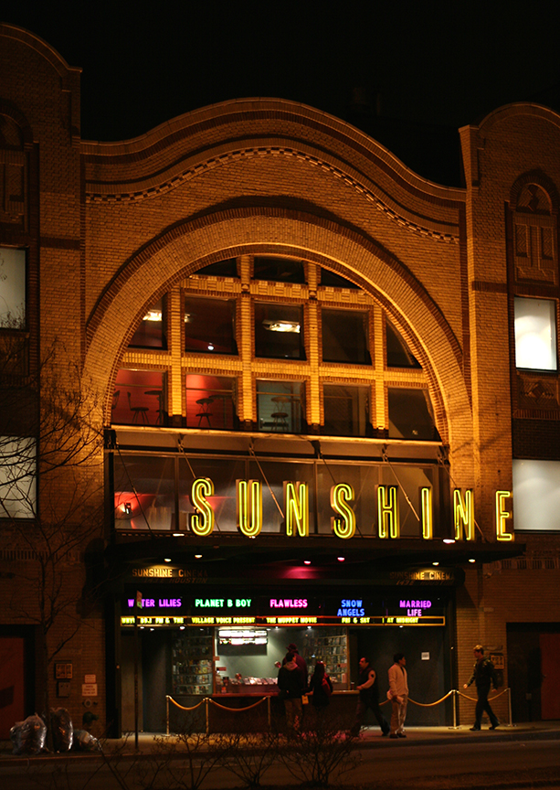 Located in the now fashionable Lower East Side at 145 East Houston Street, Sunshine is one of a handful of premiere houses featuring art films, along with Angelika, Quad Cinema, Film Forum, IFC, Village East, and Lincoln Plaza.