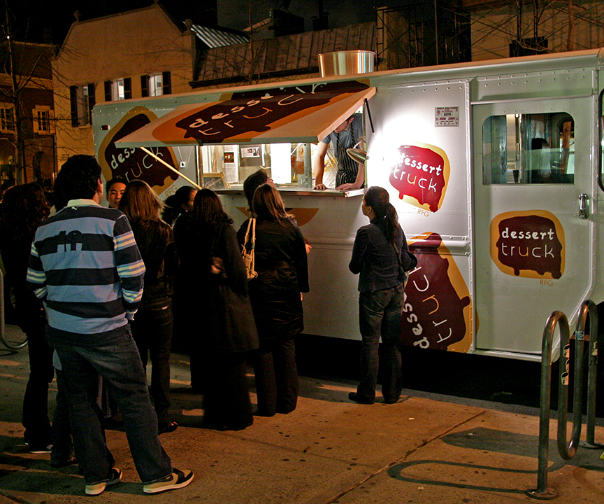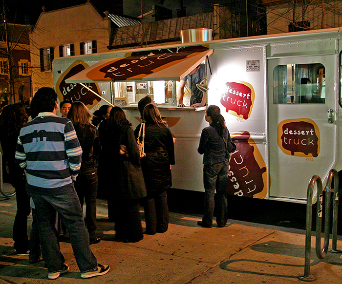 THIS is New York at its best. I have often felt that NYC is a place where the extraordinary is common and the ordinary is uncommon. And, of course, the extraordinary is what makes it great to live here and why visitors love it. Sometimes it feels like there’s something extraordinary to be discovered around every corner. Like the Dessert Truck on the street selling gourmet pastries – for $5 each. No need to go into an expensive restaurant and sit down. What could be better? I was completely unaware of this until a few days ago, when two friends introduced me to it. Amazingly, it is only a few blocks from my home, yet I never really noticed it. They are located at 8th Street and University Place and are open 6 nights per week.