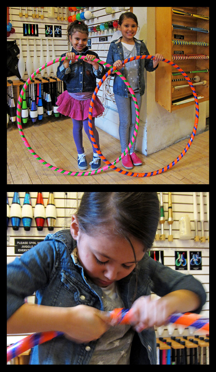 At one point, two girls rushed up to us, proclaiming that they too could hoop. In seconds, Angeleena (5 years old) and Victoria (8) Cordero began to hoop furiously as the hoops became objects caught in the winds of two small tornadoes.
