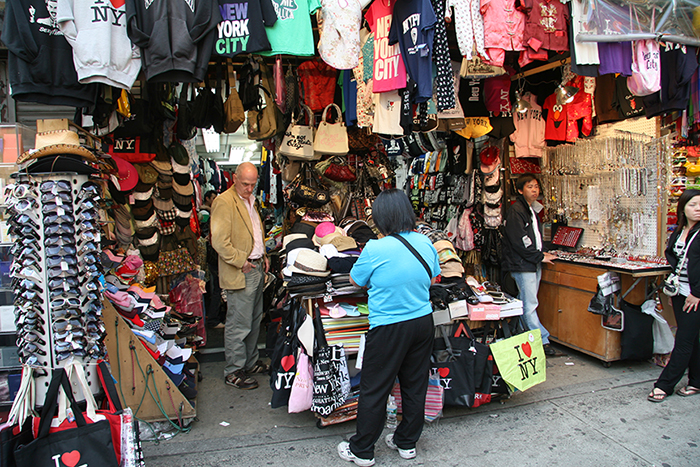 Unfortunately, for manufacturers of top-branded items, this area of Chinatown around Canal Street and Broadway is also the mecca for fakes and knockoffs. Trinkets, baubles, tourist T-shirts, and tacky NYC memorabilia are mixed with fake designer watches and designer bags. This is where Prada, Gucci, and Coach bags can be found for a small fraction of their normal retail price. Or Rolex watches for a few dollars. There are stories of back rooms and underground chasms where serious customers are led for counterfeit treasures (read an article about this here). Crackdowns and large scale arrests are made regularly, particularly targeting the importers and larger operations. But the pirates are tenacious, and the cat-and-mouse game continues.