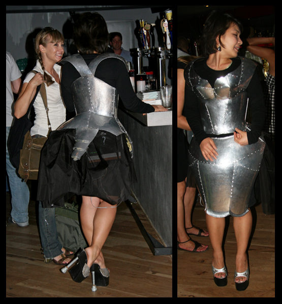 I did catch just a couple of other art works. One was the extremely ambitious project, Compli-mum (complete woman), by computer artist Hyojin Ju. Her motorized skeletal structure, appearing as feminine armor, changes through the use of microcontrollers and features two video displays. See a photo of Hyojin displaying her work here. Many of the projects seemed quite imaginative. You can see them all at the Conflux website…