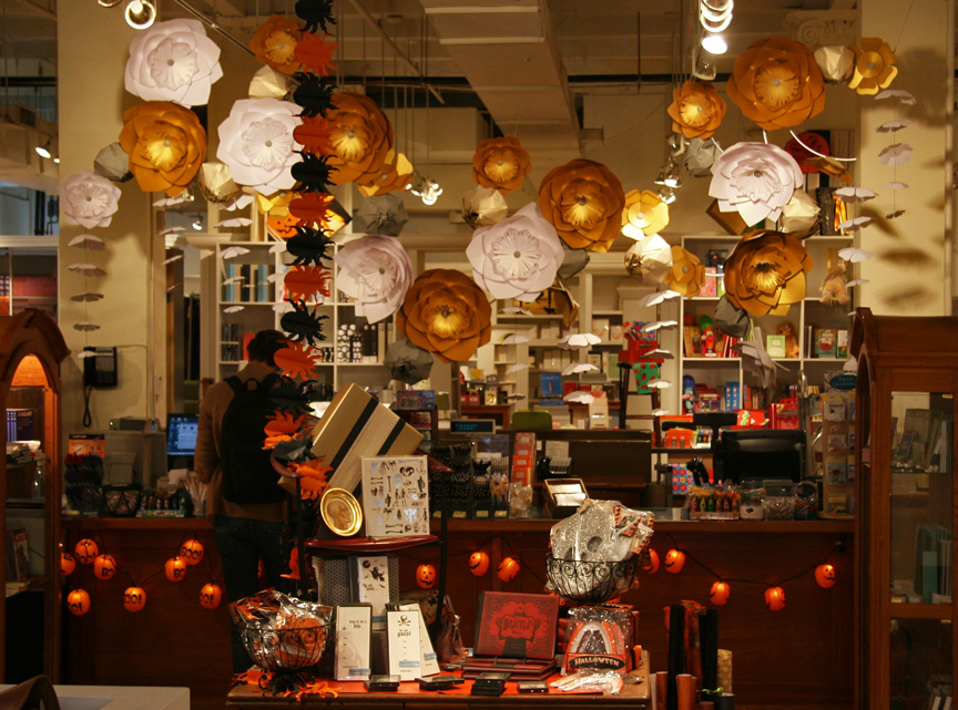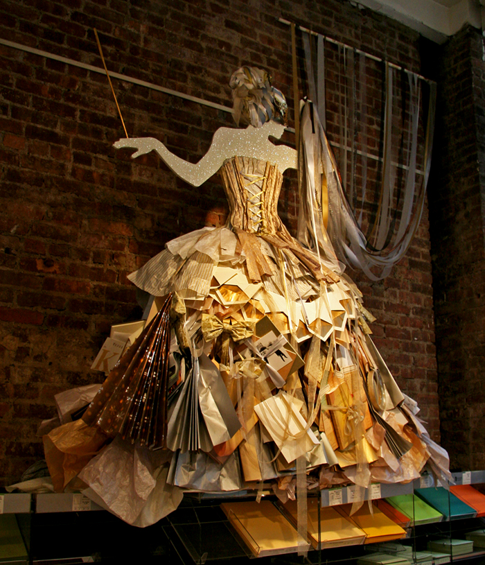 The whole unique feel of the place is what really sets it apart. They are known for their beautiful, creative store displays, like the woman made from paper in today’s photo taken at their 72 Spring Street store. See another interior photo with their current store display here. If you have not been to the shop, I recommend a visit to Kate’s. It’s a shrine to paper…