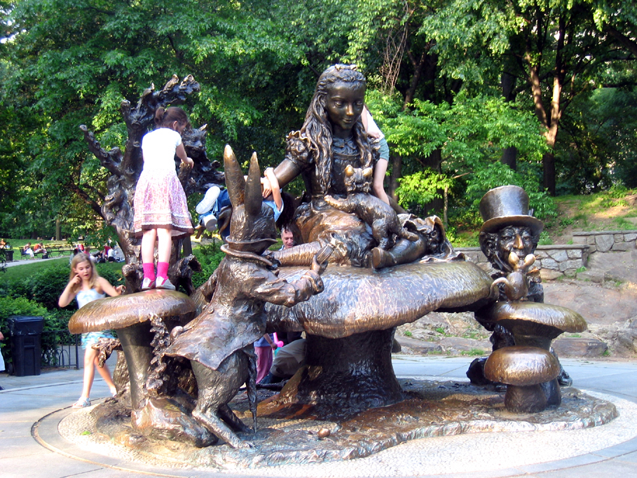 The Alice in Wonderland statue may well be the most popular and heavily used statue in Central Park. It is made for children to climb on, and they do. The different textures and levels were designed to be soothing and have become rubbed smooth by many small hands.
