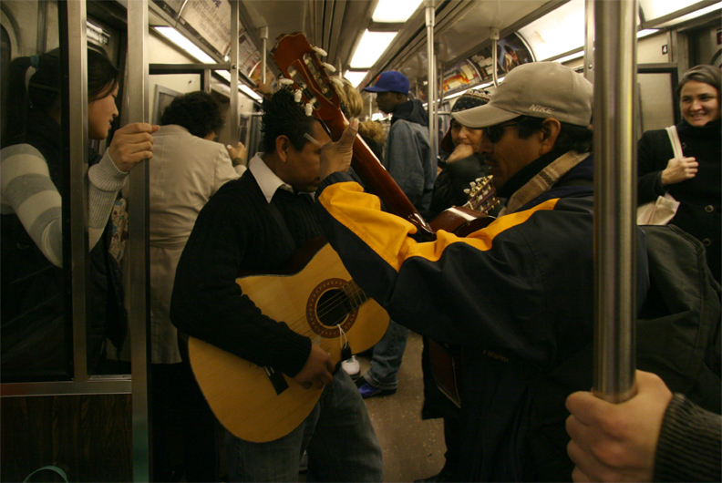 On this ride, I found the two Latin guitarists with their singing to be just the antidote for the crowded conditions. And my $1 contribution to the arts was well received…
