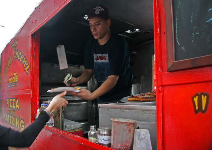 Vinny specializes in Sicilian-style pizza, perfect for the New Yorker or visitor on the go – no folding required…
