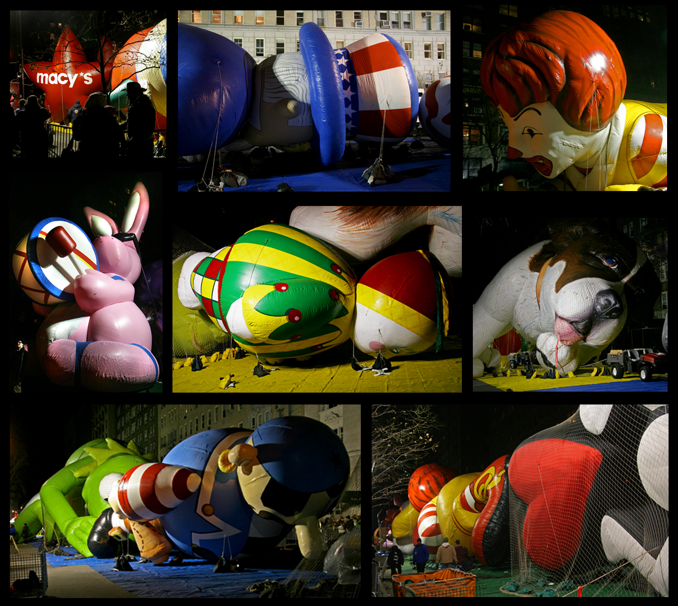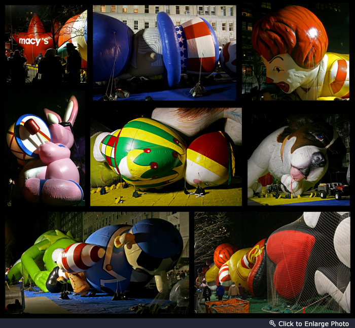 One of the New York’s biggest events is the annual Macy’s Thanksgiving Day Parade, a tradition since 1924. On Thanksgiving eve, the inflation of the character balloons is an event itself. Thousands visit with many families and children. I have done this twice, however, both my visits were after the actual inflation, which occurs earlier in the evening. You can read about this event here in my posting from 2006.