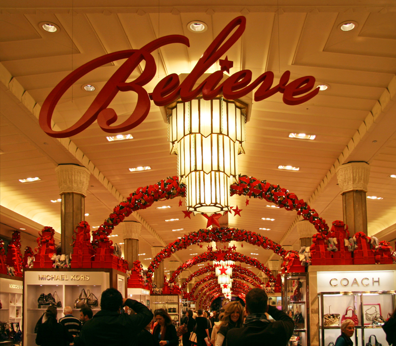 When I first saw this Christmas display at Macy’s with the message Believe, I interpreted it to mean that the word believe was being used in a way one would expect during the holiday season – believe in Santa, believe in Christmas, etc.