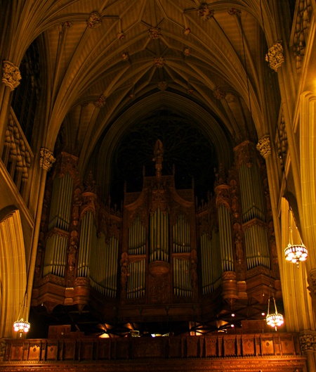 The original organ in Saint Patrick’s Cathedral was built in 1879 by Geo. Jardine & Son, one of New York’s organ builders during the later half of the 19th century. In 1926, Pietro Yon was appointed Organist/Director of Music, and plans were initiated to replace the Jardine organ. The St. Louis firm of Geo. Kilgen & Son was contracted to build two new instruments according to designs heavily influenced by Mr. Yon.