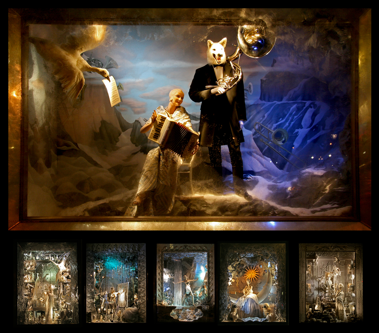 A large degree of the fascination with Bergdorf’s windows this year owes to their eerie, surreal character. Many retailers hire outside firms to to their windows, but Bergdorf does theirs with their own window design team, headed by David Hoey, Senior Director of Visual Presentation. The painstaking work is done outside the city in a Queens warehouse – preparations start as early as October.