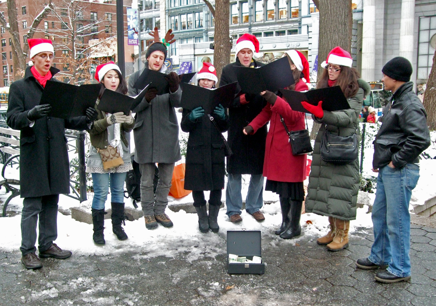 Photo Note: These carolers were in Union Square Park. I did not notice on first examination of the photo that they were collecting money for their efforts. Apparently I have lost or misplaced my tinted glasses 🙂