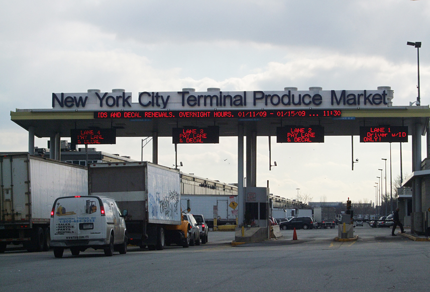 Hunt’s Point is the largest food distribution center in the world. It occupies 329 acres and is broken up into three primary large distribution centers, each handling different commodities: New York City Terminal Market (fruits and vegetables), Hunts Point Cooperative Market (meat and poultry), and the New Fulton Fish Market.