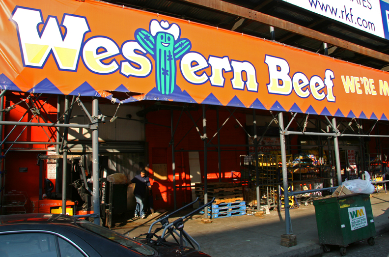 Western Beef has 21 stores in the five boroughs. This place sells all types of meat along with many other grocery items. Since the time this photo was taken (2006), the store has moved from 403a West 14th Street in the meat packing district, shown in the photo, to 16th Street. According to their website, “Western Beef, Inc. establishes supermarkets primarily in inner-city neighborhoods abandoned by many other supermarket chains.” This was certainly true of the area at one time – on a stroll through the meatpacking district, one would see trucks, sides of beef hanging from hooks, entrails being packed into drums, and prostitutes at night. The area was defined by beef at every business level – wholesalers, distributors, retailers, and restaurants such as Old Homestead.