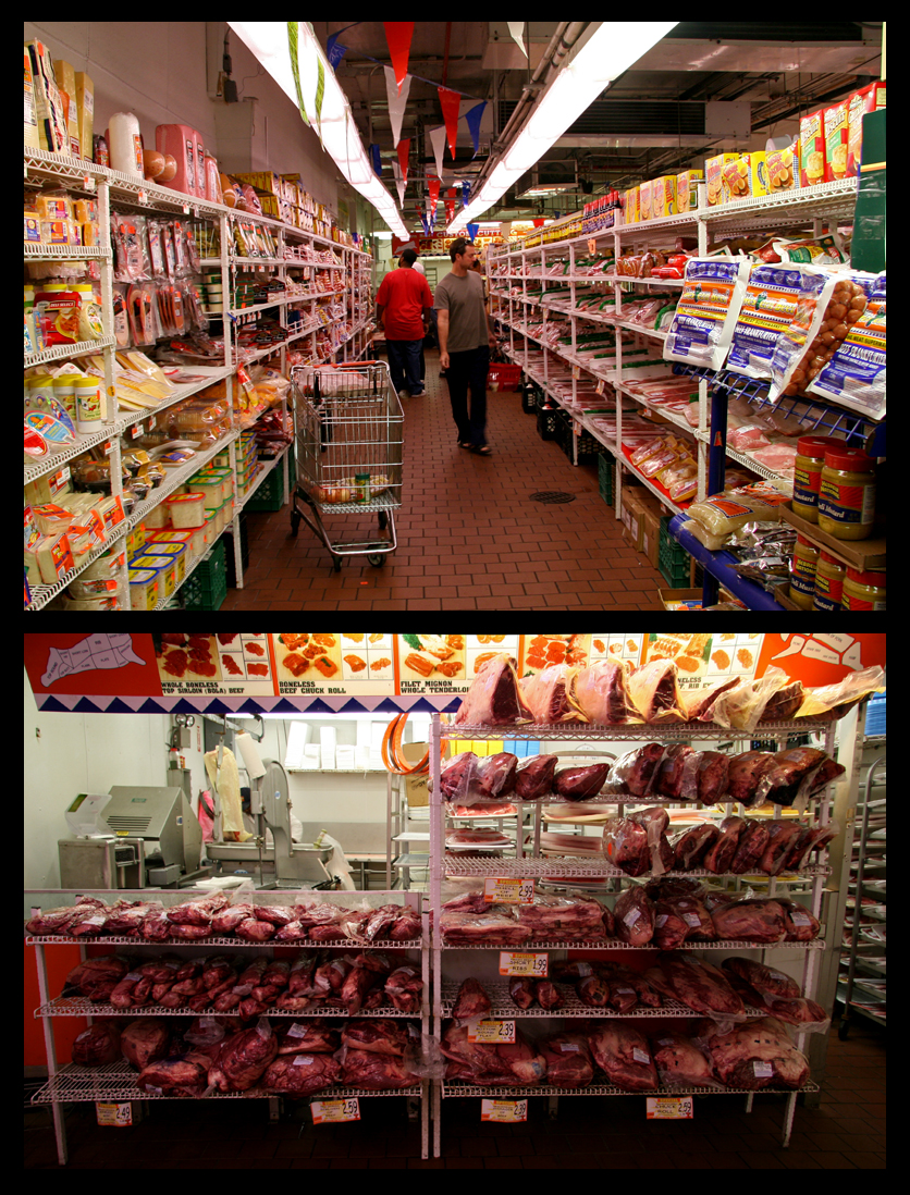 In reviewing my photo archives, I came across a series of images that astounds me now as much as the day I took them. Why astounded? Because in Manhattan, the last thing I ever imagined was a place that, for all intents and purposes, looks like a shrine to beef (see photos inside here). Even the outdoor signage and name seemed like it belonged in Texas or Michigan. I never posted the photos because at the time I found them too rough and was looking to a future opportunity to photograph the store in a more flattering light. In retrospect, a silly consideration – after all, this is the reality of the place and its environment. It would be difficult to photograph this place in a way that exudes bucolic charm or is more polished.