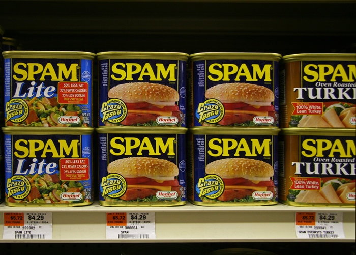 Have you heard the Monty Python sketch & song about Spam? Very funny!