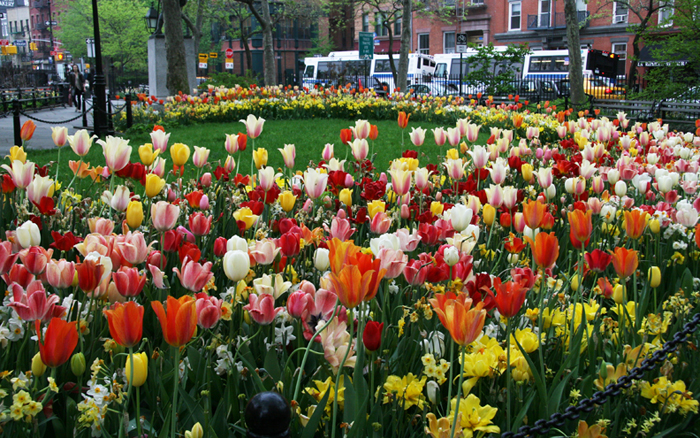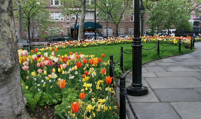 The park in today’s photo is Abingdon Square in the West Village. While there, a friend who is also new to this city exclaimed that this must certainly be one of the most beautiful parks in all of New York. To which I replied, do not be overly swayed by the display which is primarily tulips. Their life is quite short, and soon this spectacular display will be much more subdued. That said, Abingdon Square is a beautiful pocket park, many of which can be found throughout the city.