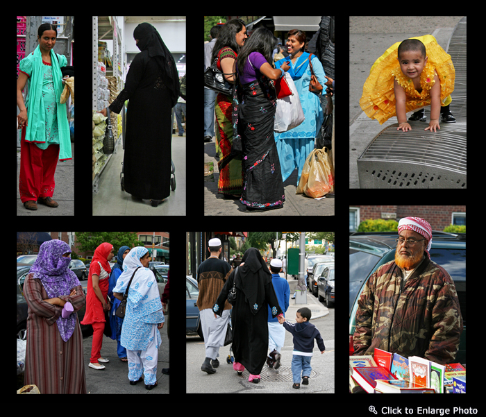 The most striking thing about a visit to this neighborhood is the extraordinary numbers of people who are wearing traditional non-western dress. Turbans, Saris, Burqas, and other unusual dress dominate the streets and shops, which themselves are a menagerie of merchants featuring products and foods catering to these varied cultural groups. Food alone is enough of a reason to visit Jackson Heights.